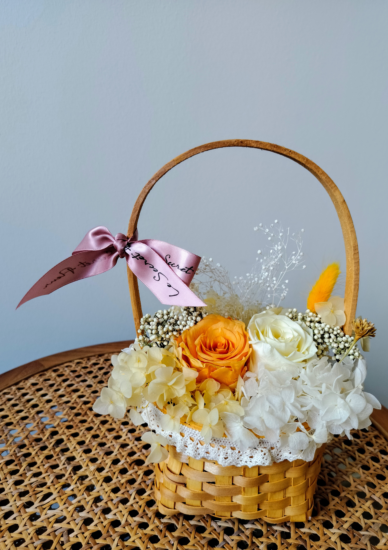 Experience the tangy sweetness of our Citrus Basket, brimming with vibrant yellow and orange roses reminiscent of sun-kissed fruits. Each bloom radiates with natural beauty and vitality, evoking the freshness of a summer morning. Nestled in a charming woven basket, this delightful arrangement is a visual symphony of cheery hues, perfect for adding a pop of color and joy to any space or occasion.