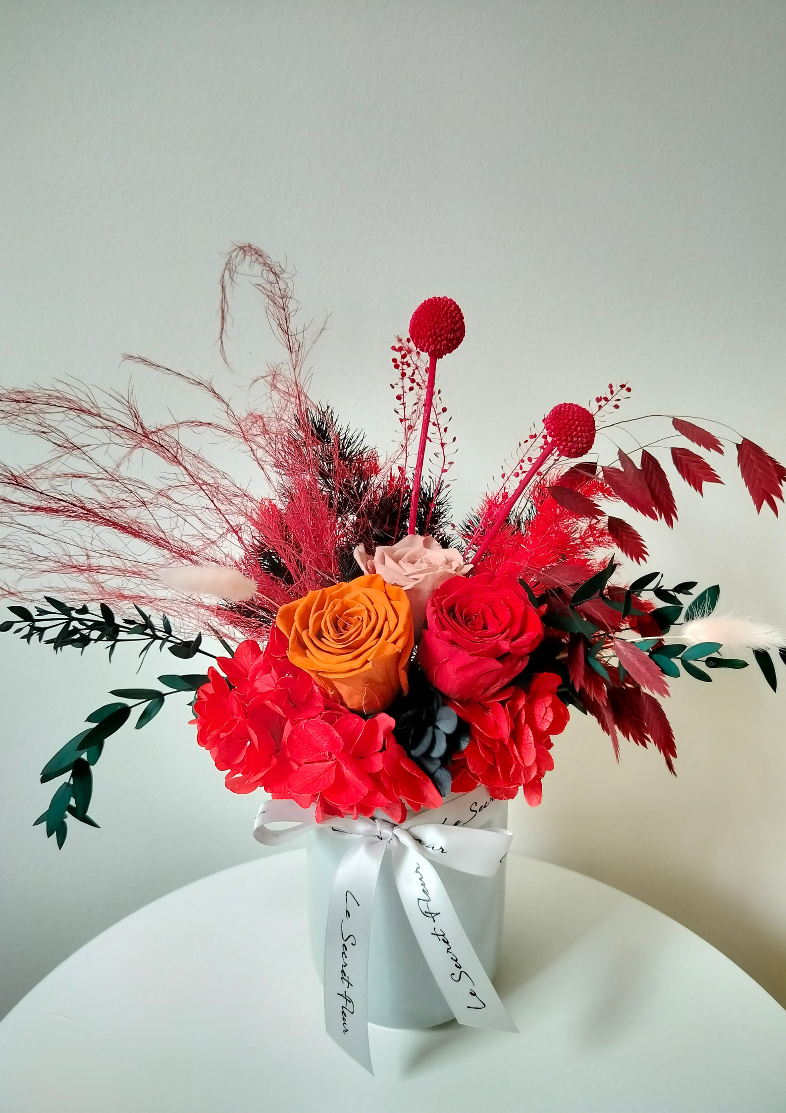 Celebrate love with the unique and romantic combination of Gemma Vase arrangement. This stunning arrangement, presented in an elegant vase, captures the essence of passionate romance and sophisticated charm. A perfect choice for a memorable gift or to add a unique touch of beauty to your home.